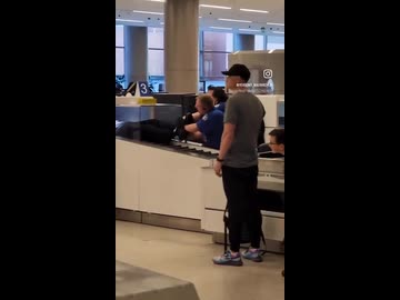 ホモと見る空港の手荷物検査で自分を検査する人