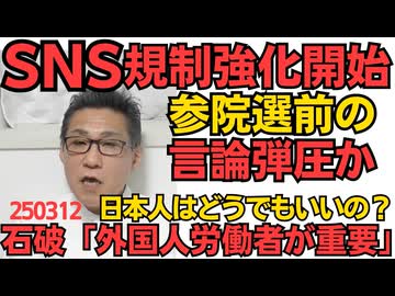 SNS規制強化「情プラ法」4月1日から施行、3月11日に閣議決定したばかりなのに参院選前に締め付け開始か/石破「外国人が安心して働ける環境作りが重要」日本人はどうでもいい模様 250312