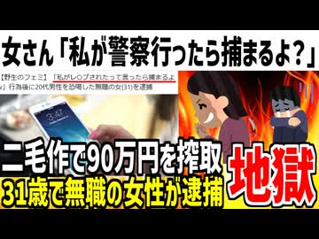 【二毛作】女さん「本当は同意してない。金払わないなら警察行くよ?」→男から90万騙し取って逮捕された模様...