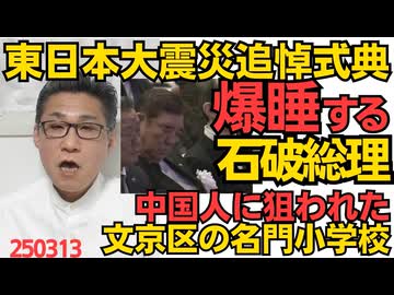石破総理、東日本大震災追悼式典で爆睡、知能だけでなく体力的にも総理の資質無し/文京区の名門小学校が狙われ生徒の2割が中国人に 公教育に年間70万円かかるのに外国人がタダ乗り250313