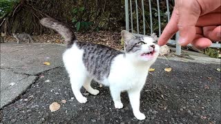 恐る恐るモフられに来る野良子猫がカワイイ