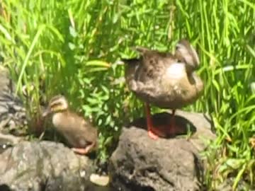 カモ親子で毛づくろい 鳥の観察