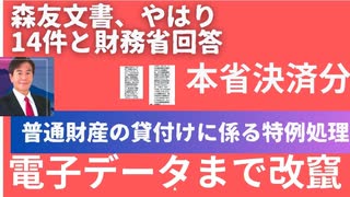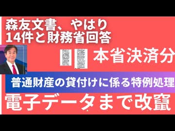 森友文書について先日の私の質問に財務省から回答。 やはり14件。文書開示の段階では、近畿財務局決裁分13件について開示の方向だったものを本省決済分1件についても開示と。