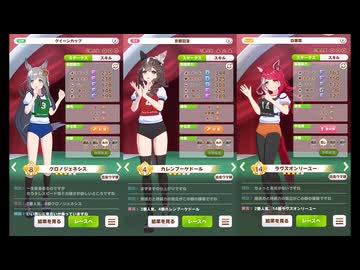 【ウマ娘】グランアレグリアの育成シナリオで見られるクロノジェネシス・カレンブーケドール・ラヴズオンリーユーの体操服パドック