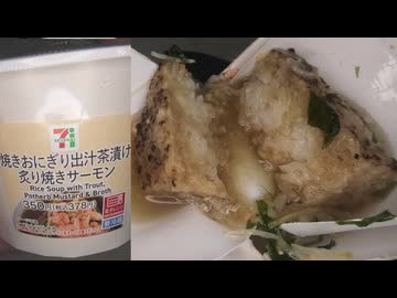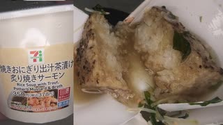 セブンイレブンの炙り焼きサーモンの焼きおにぎり出汁茶漬けを食べました。 #セブンイレブン #サーモン #茶漬け #炙り焼き #おにぎり