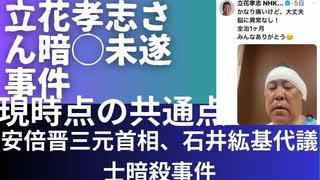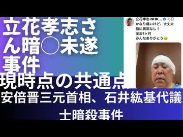 立花孝志さん暗◯未遂事件は由々しきこと。安倍晋三元首相、石井紘基民主党国会Gメン隊長暗殺事件との現時点で分かったこと、わからないこと。その共通点