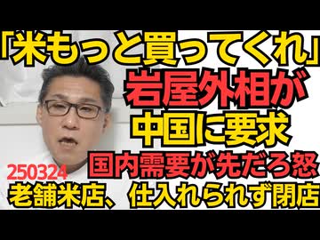 岩屋外相「日本の精米をもっと買ってくれ」中国に要求 品薄で米の値段が2倍になってるのにこの言い草/創業90年の米穀店「米屋ですが米がありません ごめんさい」貼り紙し閉店 250324