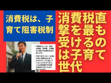 全世代の中で特に消費支出が増大するのは子育て世代。教育費や住宅費の負担が大きいため。消費税は、子育て世代に最も過酷な税。