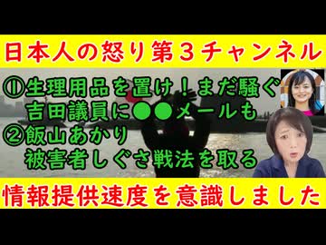 【生理用品を置け!】吉田県議に●害メール8000通!は本当か?被害者しぐさ県議【飯山あかり】「飯山暗がりと小学生のいじめだよ!」と主張する飯山あかり