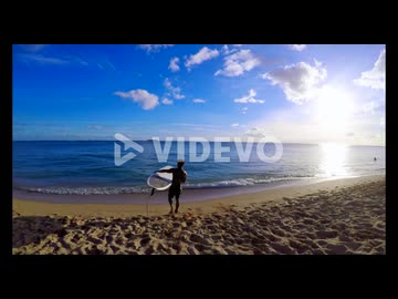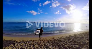 Surfer with surfboard surfing in sea water 4k