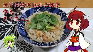 エビの炊き込みご飯を作るきりたん。