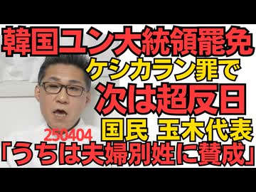 韓国ユン大統領、最高裁全会一致で罷免w次の大統領は超反日 日韓断交の推進を希望/国民民主 玉木代表「我が党は夫婦別姓に賛成。家庭崩壊って話は別問題」さすが元民主党、基本は左翼 250404