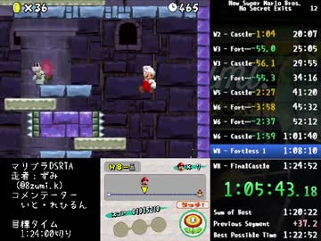 【RTA】NewスーパーマリオブラザーズDS No Secret Exits(記録:1時間20分26秒)