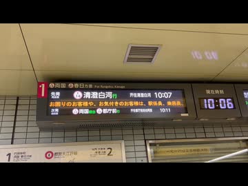 都営大江戸線月島駅1番線 清澄白河行き接近放送