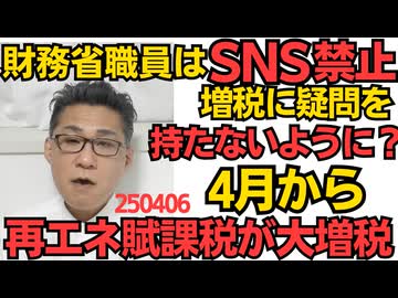 財務省職員はSNS禁止、増税に疑問を持たないように?他の省庁ではやってない聞き取り調査も/再エネ賦課税が4月から平均で月額1600円上乗せ徴収、制度の存在意義を疑問視する声も 250406