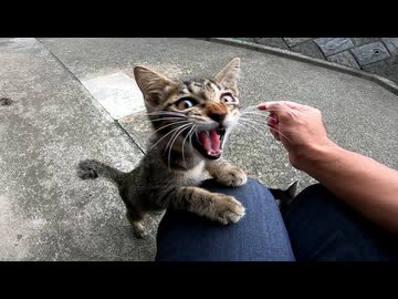 公園の子猫、ナデナデしたら喜んで膝の上に乗ってきた