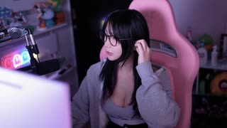 Monster Hunter girl broadcasts with her hoodie wide open to highlight her big boobs