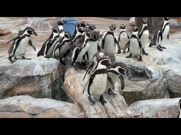 【東武動物公園】橋を渡るペンギンたち【フンボルトペンギン】