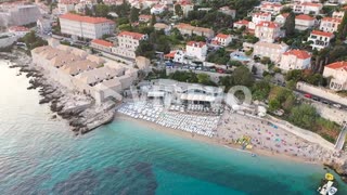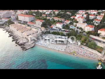 Aerial shot over on the coast of Adriatic Sea in Dubrovnik Old Town during sunset ,