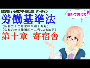 聴いて覚えて! 労働基準法 第十章 寄宿舎 を『VOICEROID2 桜乃そら』さんが 音読します(施行日 令和7年4月1日 バージョン)