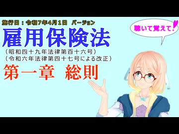 聴いて覚えて! 雇用保険法 第一章 総則 を『VOICEROID2 桜乃そら』さんが 音読します(施行日 令和7年4月1日 バージョン)