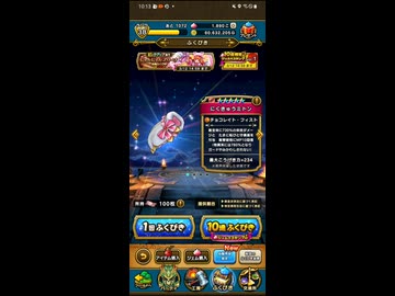 ドラゴンクエストウォークで、「ピックアップあり にゃんにゃんアリーナ装備ふくびき」を100枚ふくびきを使って10連を引く動画 サブ垢