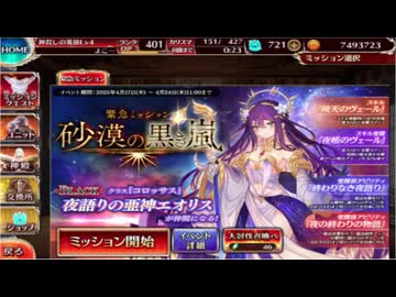 【アイギス】2025/04/20 緊急ミッション・砂漠の黒き嵐:神級