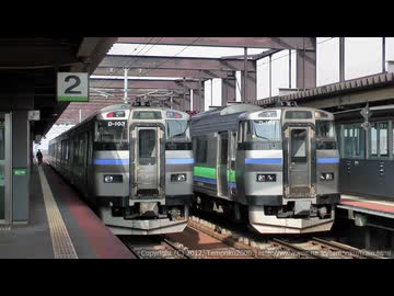 少し昔の八軒駅にて、キハ201普通列車同士の行き違い・・
