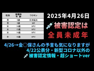 ◆被害認定は全員未成年…4.26→金○保さんの予言も気になりますが4月22日常公表分・新型コロナ以外の被害認定情報・超ショートver