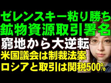 アメリカ・ウクライナ鉱物資源合意文書に署名。どちらにとっても利益の引き出せる形に大改善。トランプ政権が初めてウクライナに武器売却承認へ。議会はロシアと取引する国に制裁関税500%法案準備