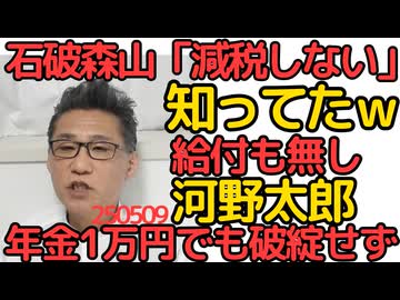 石破総理・森山幹事長「消費税減税はしない」知ってたw国民の生活より財務省の言い分を優先する自民/河野太郎「例え年金が1万円になっても年金制度破綻では無い」何言ってんだこいつと話題に 250509