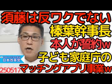 国民民主党の榛葉幹事長「須藤元気は反ワク反原発ではない」公認のために持論を封印する誓約した模様/子ども家庭庁のマッチングアプリ事業に非難轟々「税金でやることか」減税財源ならここに 250517
