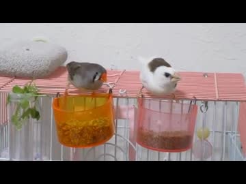 食べる2羽 譲り受けた小鳥動画その25 キンカチョウ ジュウシマツ