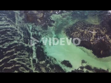 Aerial drone footage of the sea and the coral reef at sunset in Lanzarote island, Spain