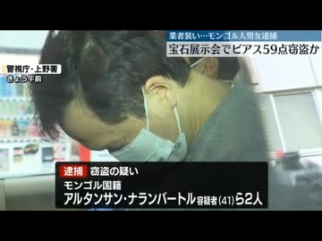宝石展示会でピアス1400万円分盗んだか モンゴル人の男女逮捕