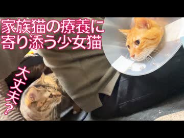 全抜歯ナイーブ猫と愛され娘猫、療養中に寄り添うも…
