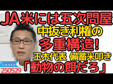 ドンキが指摘「JA米は5次問屋が存在 これが米価高騰の原因」5段階中抜きは驚き「やしゃご受け」の下の「来孫受け」となる模様/玉木代表「1年経てば動物の餌ぁぁ!」国会で備蓄米叩き 250529