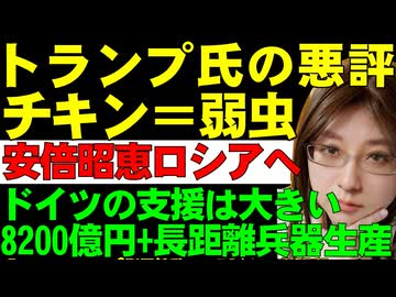 安倍昭恵氏、ロシアでプーチン大統領と会談。一方、トランプ大統領には弱虫との評価が拡散。そして、ドイツは8200億円のウクライナ支援