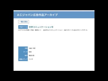 公共広告機構 1983年度「世界コミュニケーション年」ブラジルの校歌&お早ようコミュニケーション篇 ラジオCM 30秒