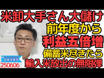 米卸大手産、うっかり前年の5倍の利益を叩き出してしまう 農家も小売も儲かってないとこで/備蓄米が尽きたら輸入米緊急輸入 安い米の無限弾におののく卸業者 250606