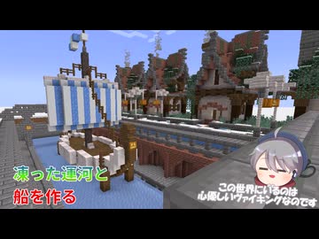 【Minecraft】サバイバル勢でも平坦世界を彩りたい 3.寒帯の街 凍った運河と船を作る【ゆっくり実況】