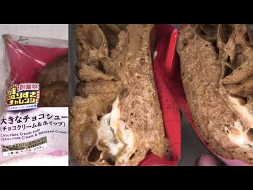 ローソンの盛りすぎチャレンジの50%増量したチョコクリーム&ホイップの大きなチョコシューを食べました。 #ローソン #盛りすぎチャレンジ #チョコクリーム #ホイップ #チョコシュー