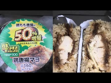 ローソンストア100の盛りすぎチャレンジの鶏唐揚マヨを食べました。 #ローソンストア100 #盛りすぎチャレンジ #鶏唐揚マヨ #おにぎり Japan convenience store food