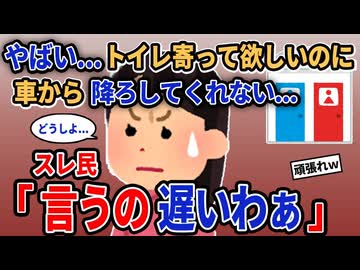 【報告者キチ】「やばい...トイレ寄って欲しいのに車から降ろしてくれない...」→スレ民「言うの遅いわぁ」【2chゆっくり解説】
