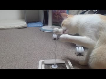 拾いねこ@生後4707/632日目 新しいおもちゃで遊ぶゆきち。