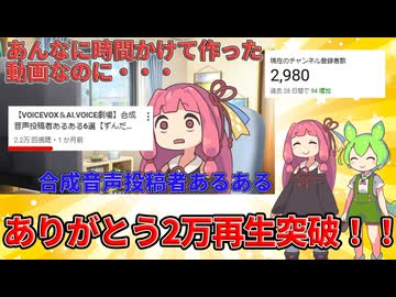 【VOICEVOX&AI.VOICE】ありがとう!!チャンネル初の2万再生突破&もうすぐ登録者3000人【ずんだもん 琴葉茜】