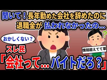 【報告者キチ】「聞いて!長年勤めた会社を辞めたのに退職金が払われなかったの...」→スレ民「 会社って...バイトだろ?」【2chゆっくり解説】