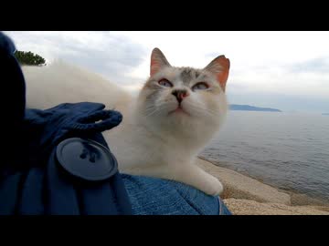 【神回】防波堤でくつろいでたら野良猫が膝に乗ってきた件について□
