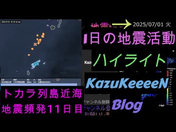 地震活動 2025年07月01日 火曜日 ハイライト トカラ列島近海 地震頻発 11日目