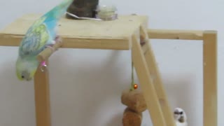 下が気になるインコ 暑そうなジュウシマツ テリトリーにいるキンカチョウ